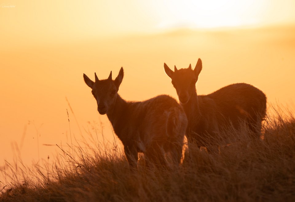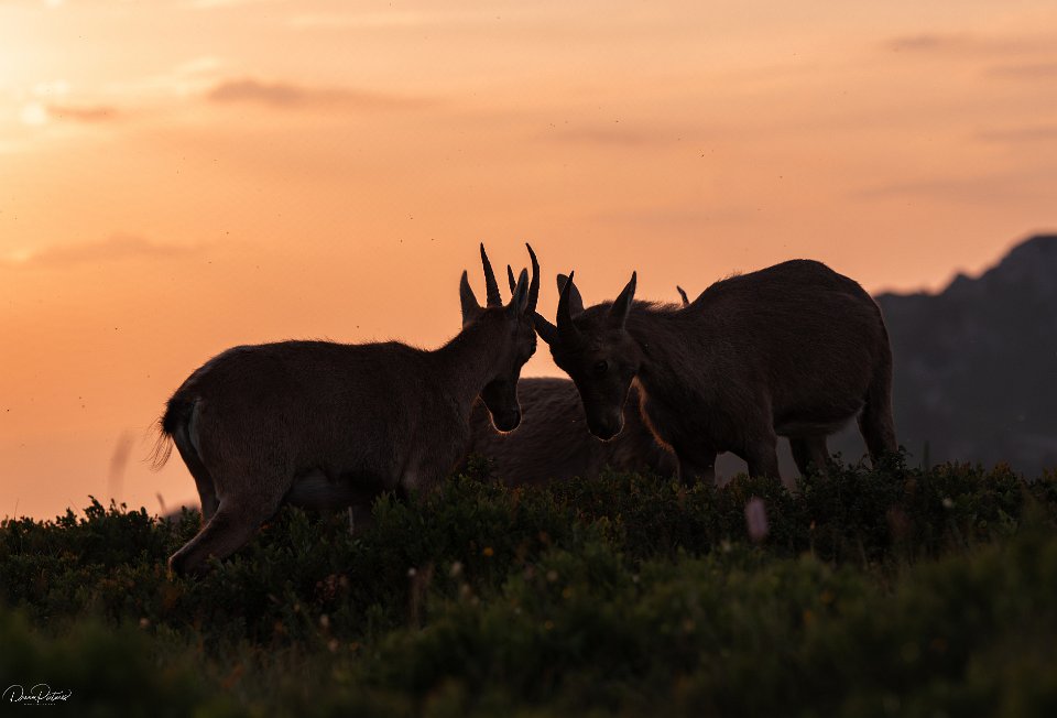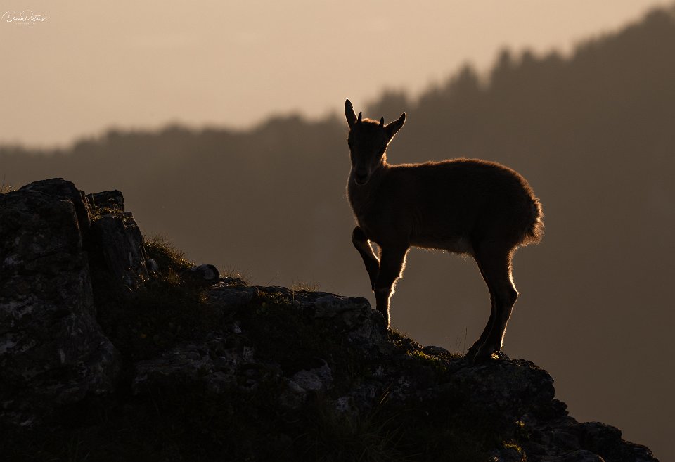 Steinbockkitz im Sonnenuntergange